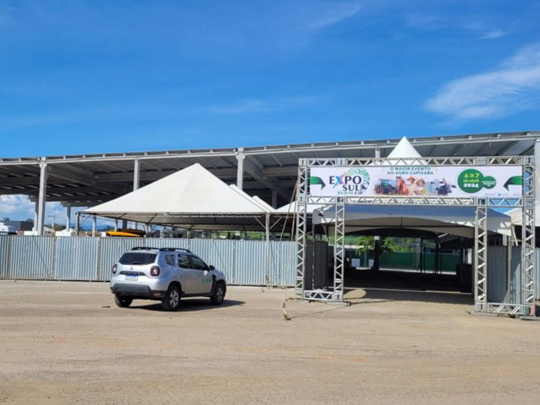 No Parque de Exposição “Carlos Caiado Barbosa”, no bairro Aeroporto, a organização do evento realiza os últimos preparativos para receber os expositores e visitantes de diversas cidades capixabas.