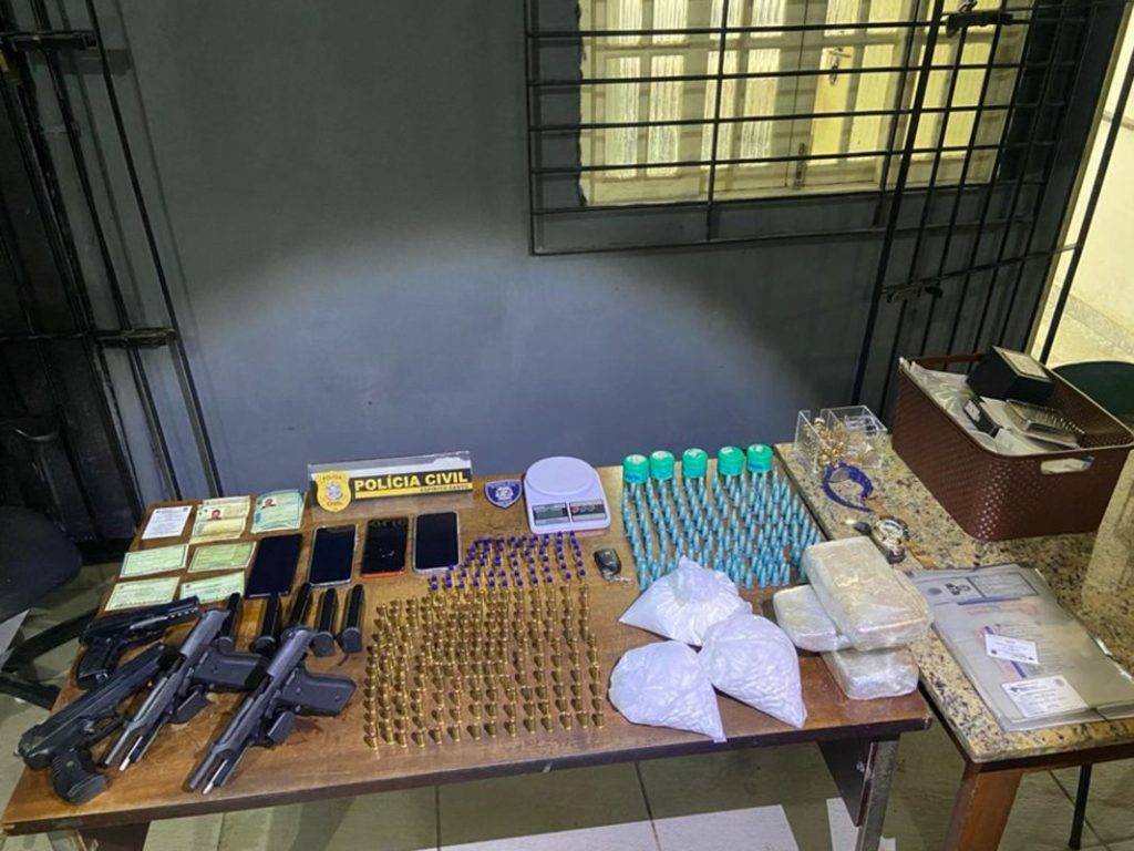 Divulgação/PC Armas de fogo, drogas, munição, além de pássaros silvestres, carro e bicicleta. É o que foi apreendido pela Polícia Civil na zona rural de Marataízes. Três pessoas foram presas; entre elas, uma mulher. A operação aconteceu sexta-feira (26), mas a ocorrência só foi divulgada na tarde de hoje (01). Três imóveis foram alvos da […]