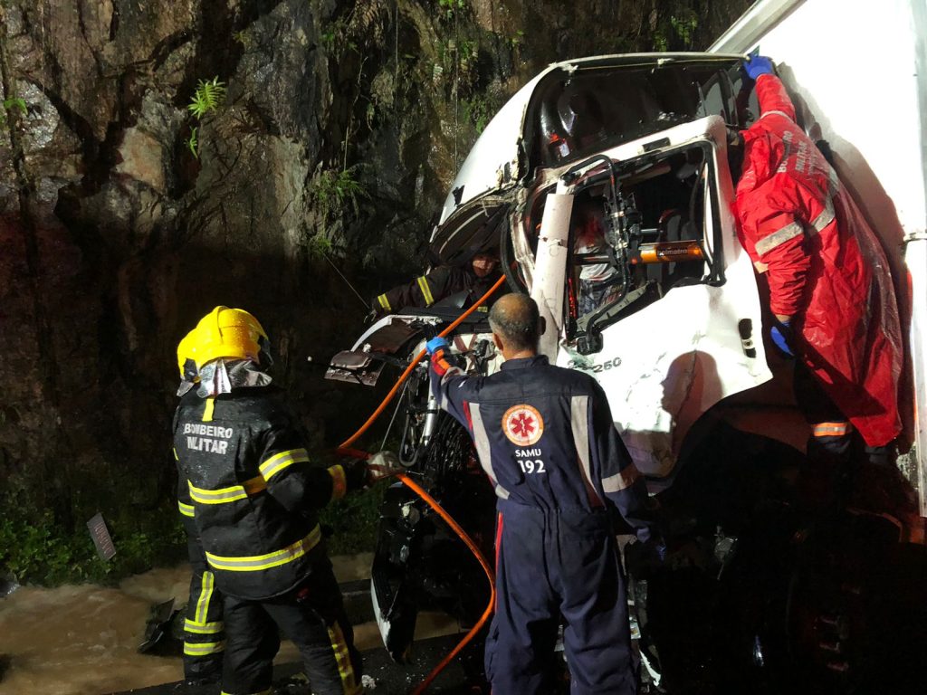 Caminhões colidem, e motorista fica preso às ferragens da BR 262 em Conceição do Castelo