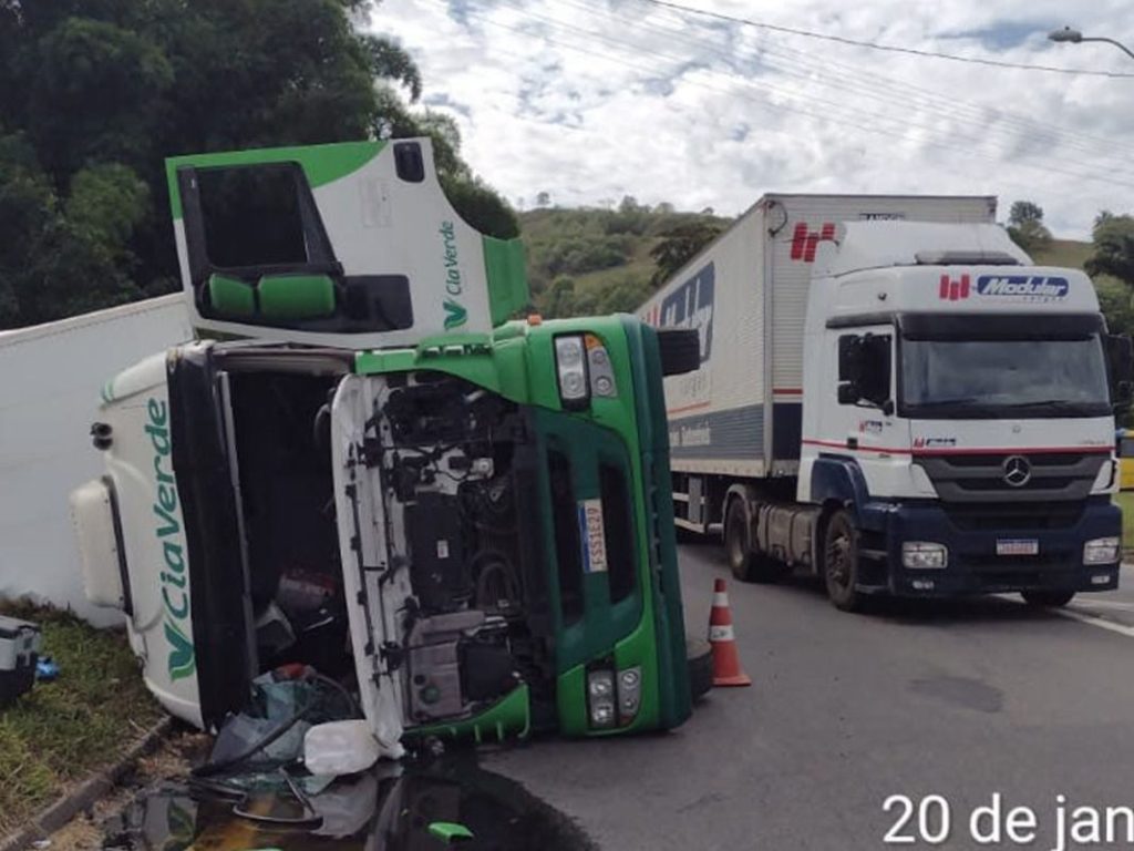 Carreta carregada com chiclete tomba na Safra, em Cachoeiro