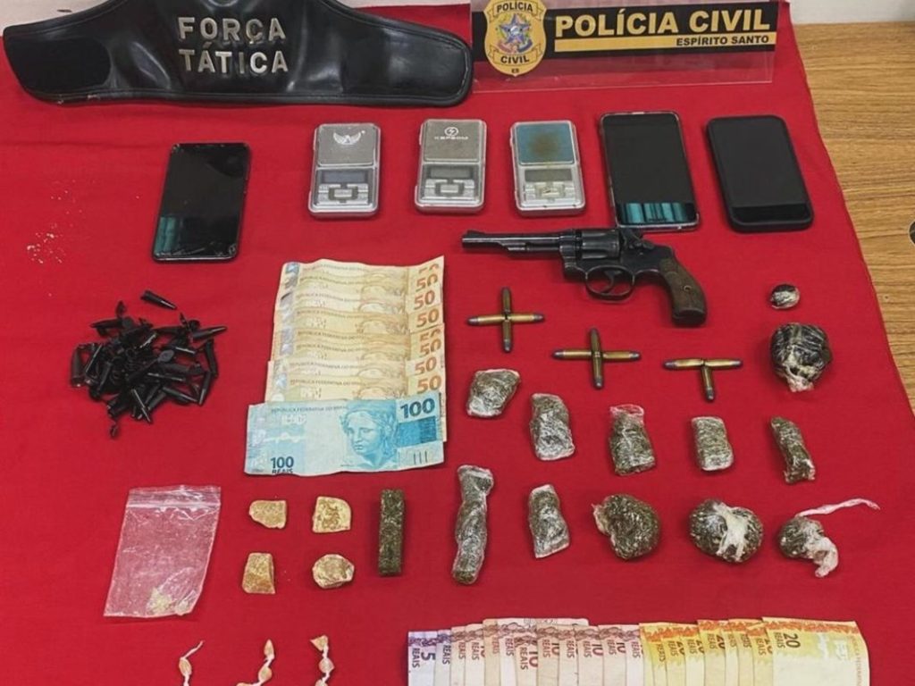 Divulgação Porções de maconha, crack, haxixe, balanças de precisão, telefones celulares, material para embalo de entorpecentes. Além de dinheiro, uma motocicleta e um revólver calibre 32, com 11 munições. É o resultado de operação da equipe da delegacia de Polícia Civil de Piúma, com apoio da Polícia Militar, no bairro Piuminas, no balneário. Dois suspeitos, […]