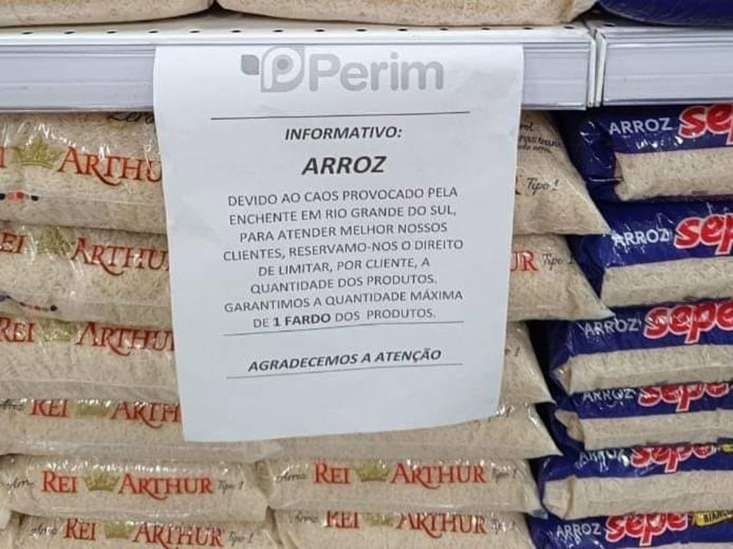 Os principais supermercados de Cachoeiro de Itapemirim estão limitando a compra do arroz a um fardo por consumidor.