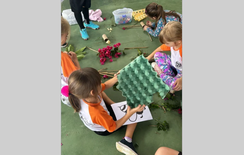 Para confeccionar as obras de artes, os estudantes utilizaram sementes, folhas, flores, galhos secos, pedras e materiais reaproveitados, como retalhos, crivos de ovos, rolinhos de papel higiênico, palitos, entre outros. Os próprios alunos levaram os materiais que encontraram em suas residências e que fossem fáceis e sem custo. Já na escola, a professora apresentou sombras de insetos a serem reproduzidas com os mesmos objetos.