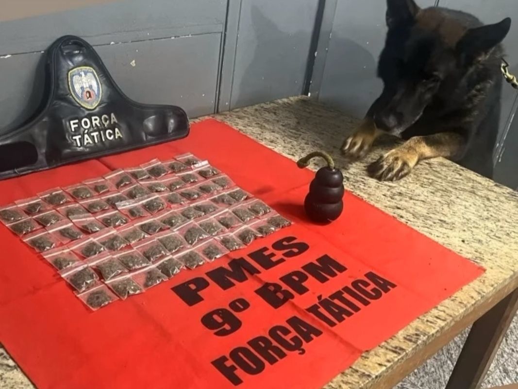 Neste sábado (20), a Polícia Militar realizou mais uma apreensão de drogas em Cachoeiro de Itapemirim com o empenho do cão farejador Messi. Desta vez, 60 buchas de maconha foram localizadas no bairro Nossa Senhora Aparecida.