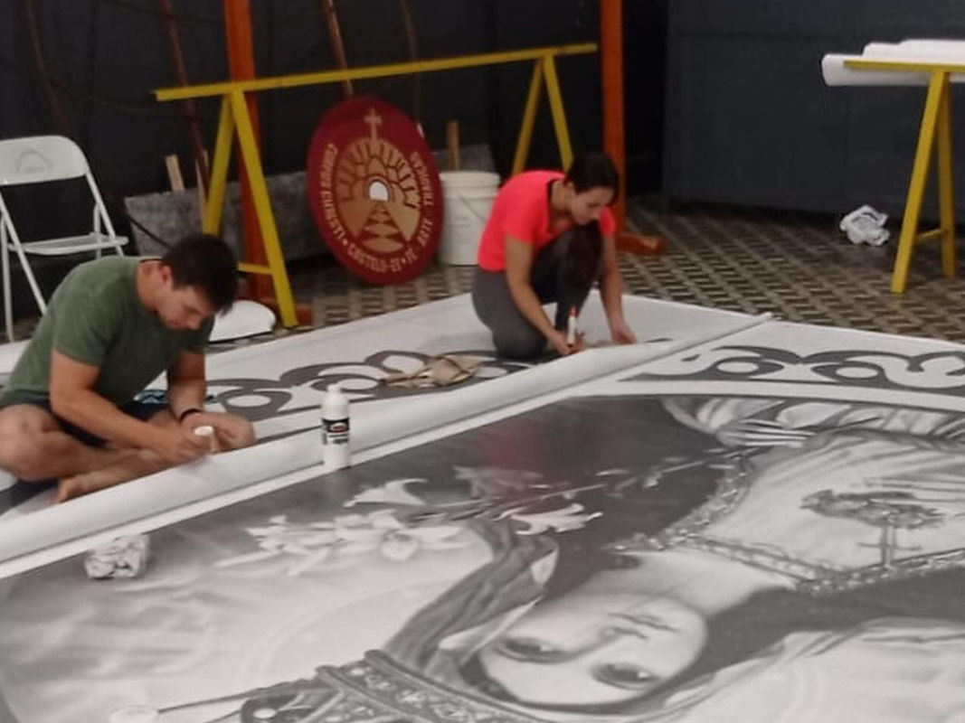 A confecção começará na noite de quarta-feira (29), e materiais como areia, pedras, folhas, flores, palha de café, dentre outros, serão utilizados na criação dos 17 quadros e 17 passadeiras que enfeitarão 1,2 quilômetros das ruas do centro da cidade. Serão 5 mil metros quadrados de tapetes com temas relacionados à vida eclesial, social, religiosa e cultural.