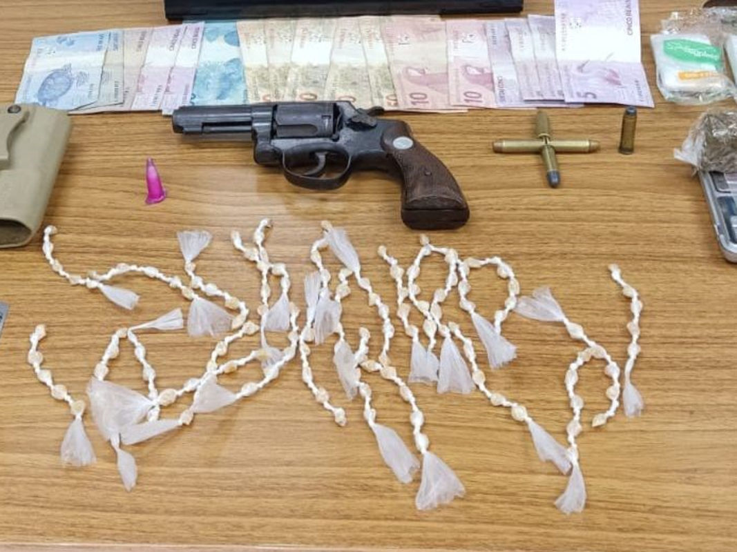A apreensão de um revólver calibre 38, 130 pedras de crack, uma bucha de maconha, veículos (uma motocicleta e um automóvel VW Fox), além de material para embalo de entorpecentes e dinheiro. E a prisão de quatro homens.