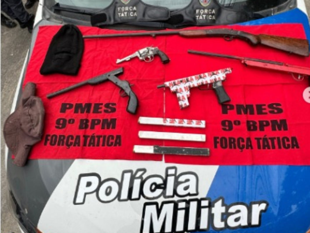 Em operação deflagrada nesta terça-feira (07), a PM apreendeu seis armas de fogo, incluindo submetralhadora, espingardas, além de revólver e garrucha, e deteve um suspeito, menor de idade.